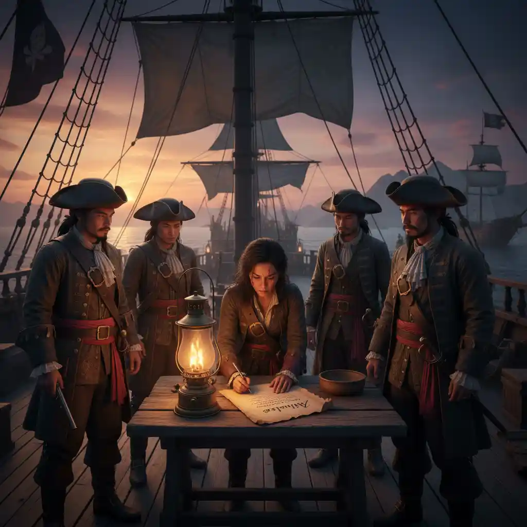 이 규약은 단순히 약탈물을 나누는 기준을 넘어, 투표권 보장과 권력 견제, 그리고 부상자에 대한 구체적인 보상 금액까지 명시한 고도의 자치 헌법 역할을 수행했다. 해적들이 사회적 소외 계층에서 모여든 집단이었음에도 불구하고 이토록 정교한 법체계를 구축할 수 있었던 이유는 생존을 위한 경제적 유인 구조와 내부 갈등을 최소화하려는 전략적 선택 때문이었다.